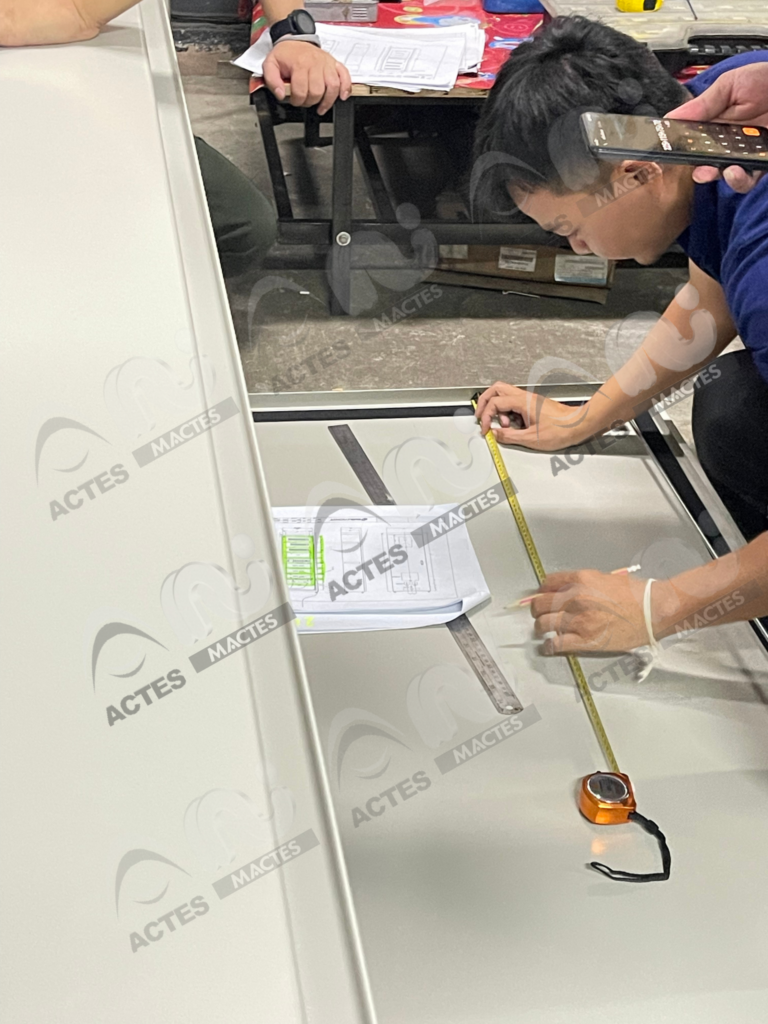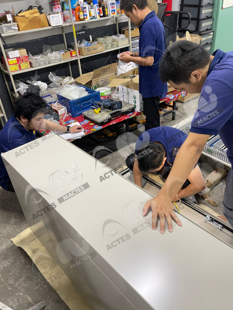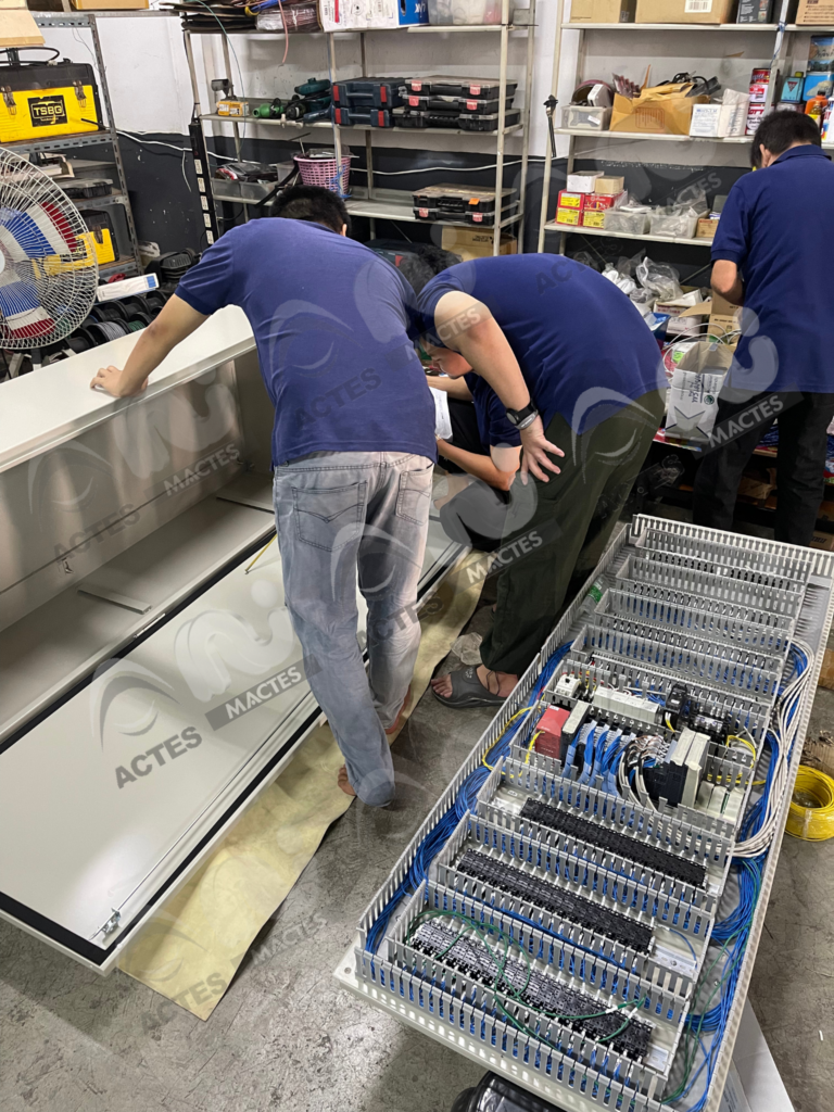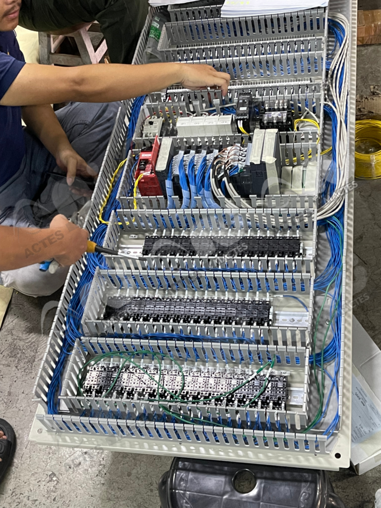 โดยทีมวิศวกรเเละช่างไฟฟ้าของบริษัทเราได้มีการประกอบในส่วนของเเผงควบคุมเป็นที่เรียบร้อยเเล้ว และมีการวัดความกว้าง ความยาว ความลึก ของตู้ เพื่อที่จะได้ใส่เเผงวงจรเข้าไปในตู้เปล่า ในส่วนที่เหลือนั้นจะเป็นการประกอบ เเละเช็คเเผงควบคุมให้ตรงตามเเบบที่ให้มาเเละมีความปลอดภัยในการใช้งานเป็นลำดับถัดไป